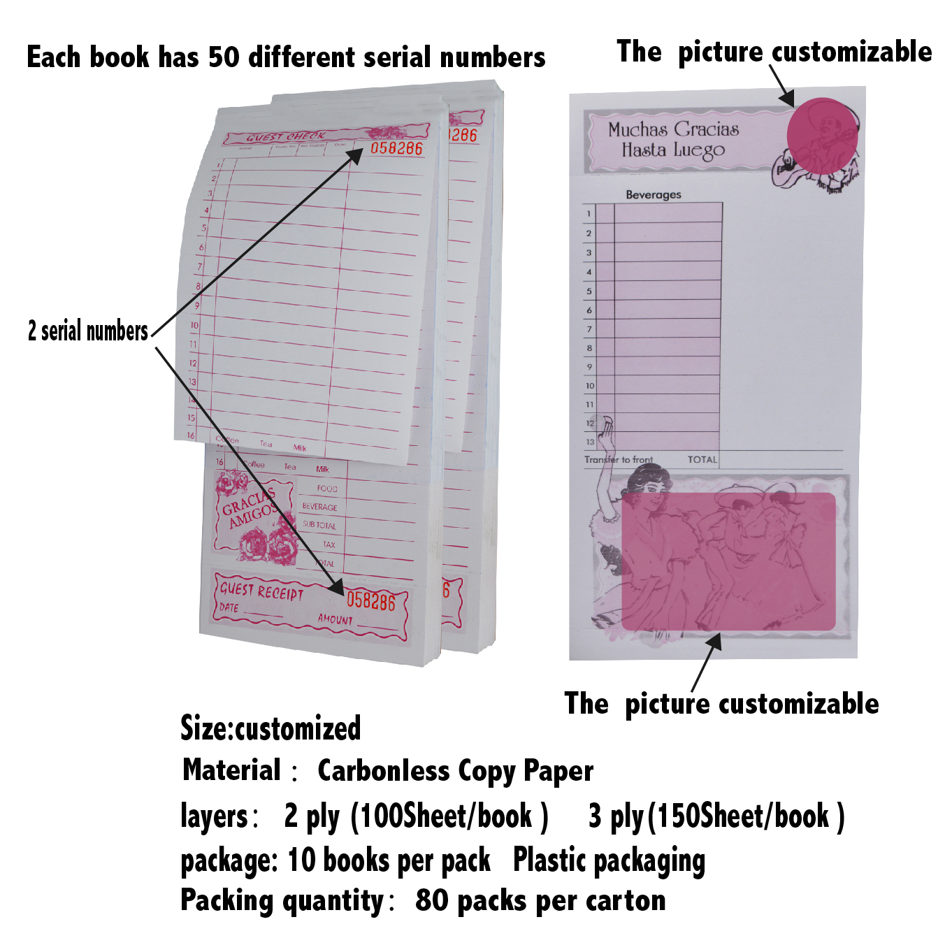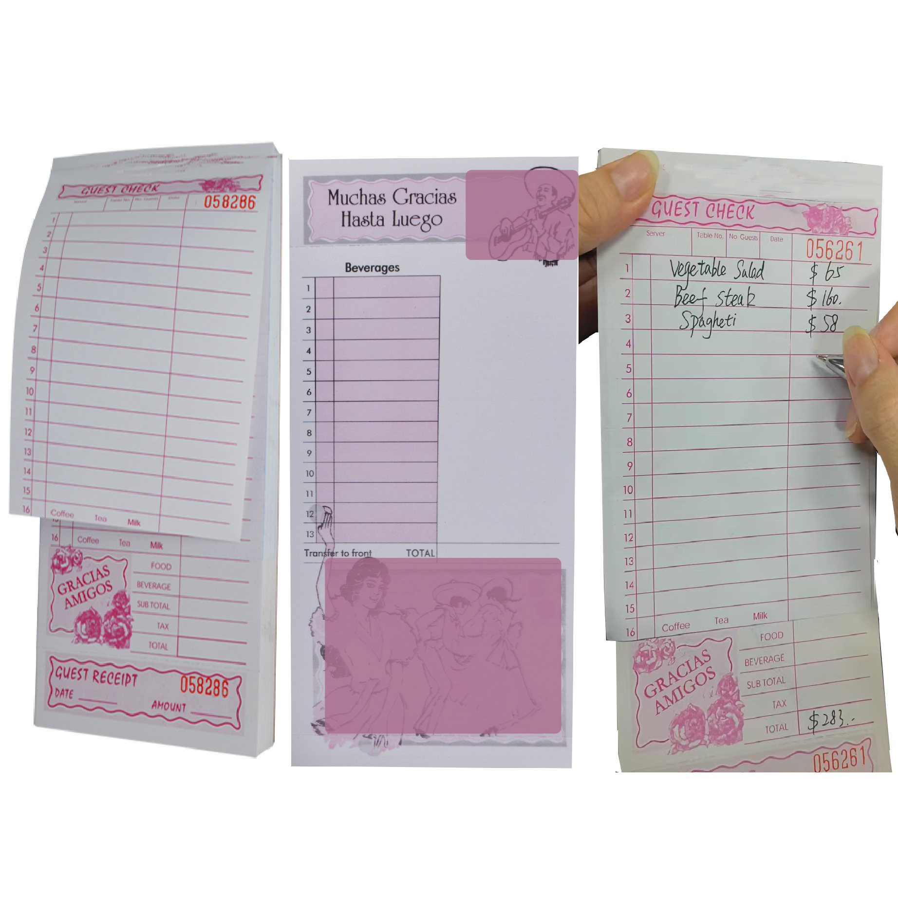 4.Advantages: Each page has a tear line at the top and there is a pad at the bottom of the book,These two points speed up recording orders,Helping the kitchen staff keep track of orders., and improving work efficiency.